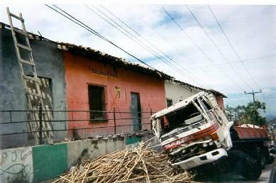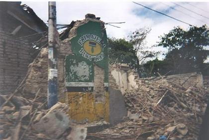 Thursday, February 22 5:00 a.m. This morning I awoke to a rumbling aftershock. It was not too violent, but was very noticeable. It only lasted about ten seconds. At 10:00 a.m., my guide/translator picked me up at the hotel. His name is Erick, and he is a very affable young man. First he drove me around Santa Tecla and showed me some of the damage.