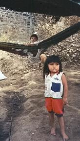 We ran out of rice, beans and milk and found a tienda and practically bought them out. Then on the edge of the town near a cliffside overlooking a spectacular valley, we found another whole group of plastic shanties. Little naked brown children, soaking wet from a bath, clamored all over the cross. Finally we wound up under a little covering, sitting with a family of seven. I spoke to them and prayed for them and we gave them bags of milk and beans.