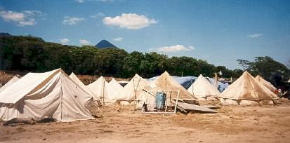 This camp was huge, someone told me ten thousand—but I have no way of knowing. It was a sports complex with six or eight soccer fields converted into a refugee camp. Although their conditions certainly were not as bad as those in Cohutepeque’, by sheer volume of people living together in a camp setting, things were definitely less than sanitary. In some of the fields in the middle, things appeared better than a group of several hundred tents located in a remote corner. I don’t know if they were late arrivals or what, but their area of the camp looked much more thrown together and bleak. So we headed to them.